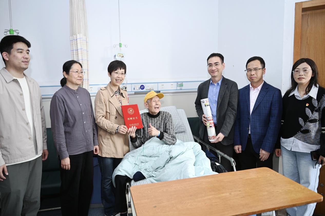 遗憾的是,因身体抱恙,曹老未能亲临现场。师生们随即前往医院探望,关心其身体康复情况,对他长期致力于雷锋精神传承、深耕公益事业的奉献精神致以崇高敬意,衷心感谢他为母校捐赠珍贵文物的深情厚谊。曹荣安校友深情勉励大家:“勿忘初心,坚守信念,将雷锋精神的旗帜永远高举。”