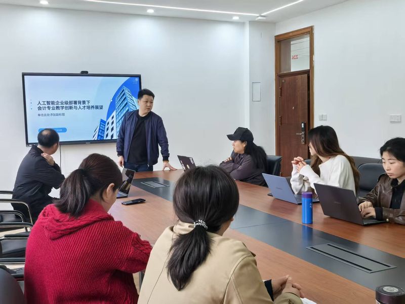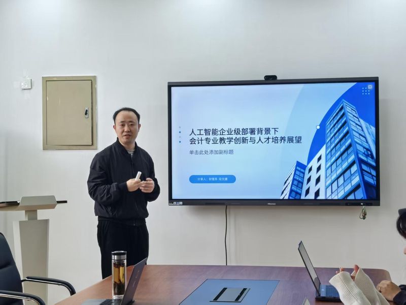在企业级人工智能快速部署的背景下,会计行业正经历深刻变革,这对会计专业教学创新和人才培养提出了全新要求。为了更好的提升学院教师人工智能素养与应用能力,推动教师角色从“知识传授”向“能力塑造”转型,促进教育教学创新提质,会计学院于4月15日下午1:30在9教230举办了以“企业级人工智能部署背景下会计专业教学创新与人才培养展望”为主题的教学研讨活动。本次会议由学院副院长贾勇老师主持,会计学院段文譞博士主讲,学院青年骨干教师参加会议。